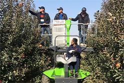 針對果樹整枝修剪、花果管理、采收運(yùn)輸?shù)拳h(huán)節(jié)和農(nóng)藝要求,研制果園采摘平臺,重點(diǎn)解決農(nóng)機(jī)農(nóng)藝整機(jī)配置、升降和伸展、傾角(坡地)和人機(jī)安全等技術(shù)難題,開發(fā)了輪式和履帶式輕便型、多動能型果園作業(yè)平臺,果園機(jī)械全液壓驅(qū)動,配有電動剪、采摘袋、標(biāo)準(zhǔn)果箱等功能裝置。