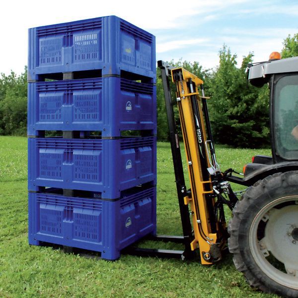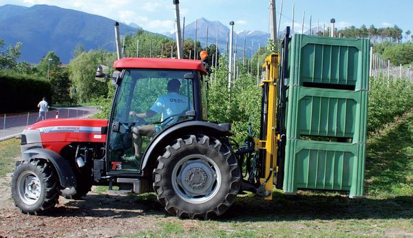 背負(fù)式叉車 是 為解決果園山地越野工況下 轉(zhuǎn)運(yùn)果筐和其它果園物資而研發(fā)的與果園拖拉機(jī)配合使用的果園轉(zhuǎn)運(yùn)裝備。叉車安裝在拖拉機(jī)后三點(diǎn)懸掛上,駕駛員通過操作液壓控制閥來控制叉車動(dòng)作,叉車具有舉升、側(cè)移、傾斜、鎖筐等功能,配備了舉升油缸2根、傾斜油缸1根、側(cè)移油缸1根、鎖緊油缸2根共計(jì)6根。可一次舉升多個(gè)果箱,方便果園果箱等物資的搬運(yùn),節(jié)省人力物力。果園用戶無需單獨(dú)購(gòu)買山地叉車,把該背負(fù)式叉車直接安裝到拖拉機(jī)上即可實(shí)現(xiàn)山地搬運(yùn)作業(yè),拖拉機(jī)可到之處都可以使用。特別適合果園采摘后的果箱的轉(zhuǎn)運(yùn)工作。